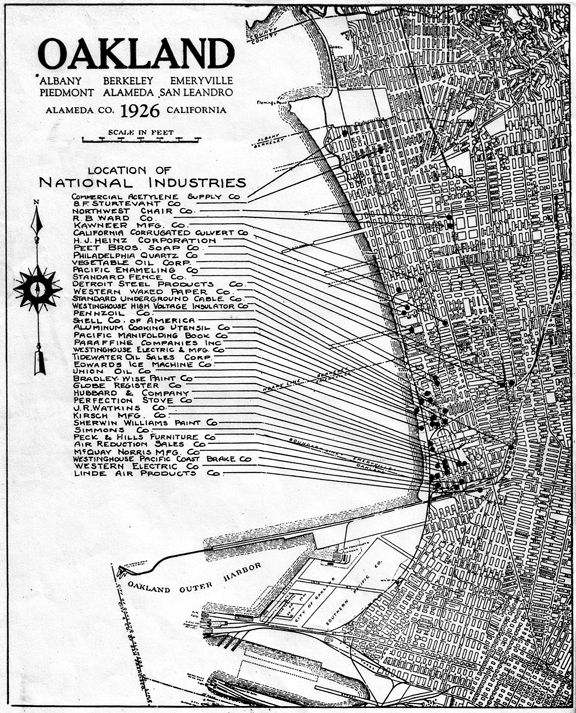 Emeryville entered a period of industrial expansion during the 20s. The town attracted industry because of its central location, low tax rate. ample labor force, and its proximity to maritime and railroad transportation.