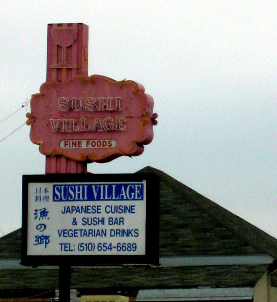 They left the original pink Sushi Village neon sign intact until about 2016 when they restored it retaining the distinct ornate shape.