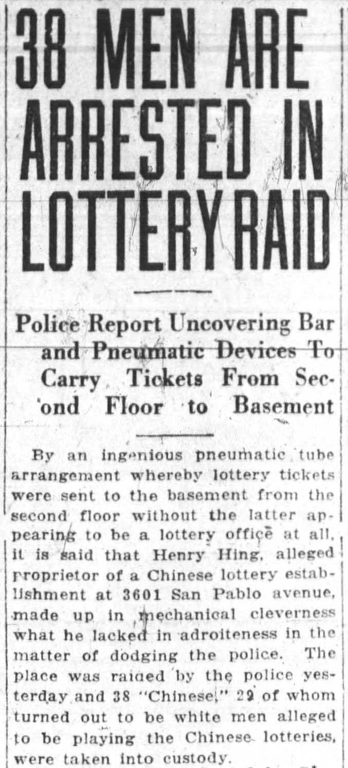 Consistent with both the era and the neighborhood, newspaper accounts from the Prohibition period note that the upstairs residential flat was raided for hosting a Chinese lottery operation, along with other illegal activities associated with bootlegging.