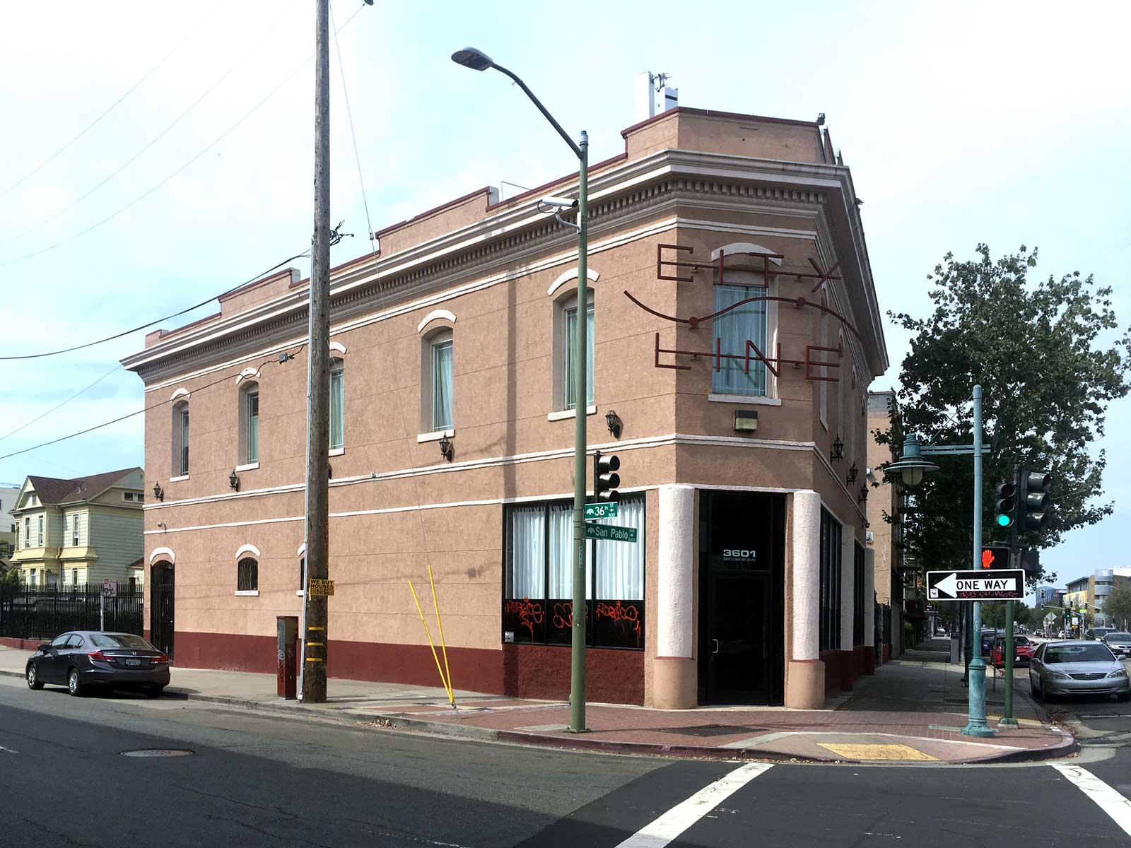 Finally, we reach the corner building at 3601–3605 San Pablo Avenue that is split by the Oakland-Emeryville border..