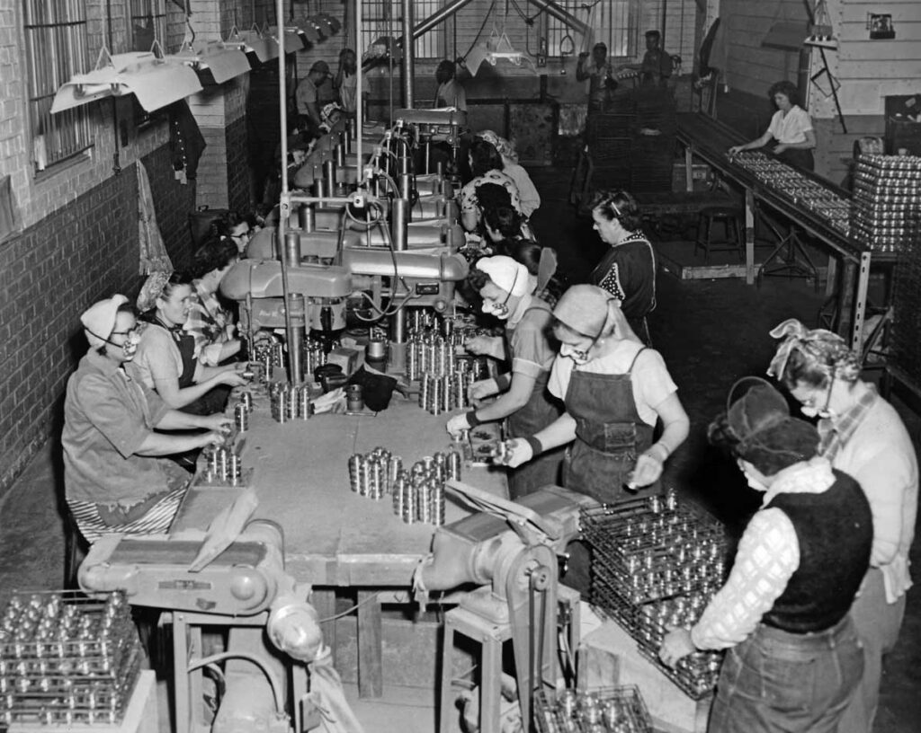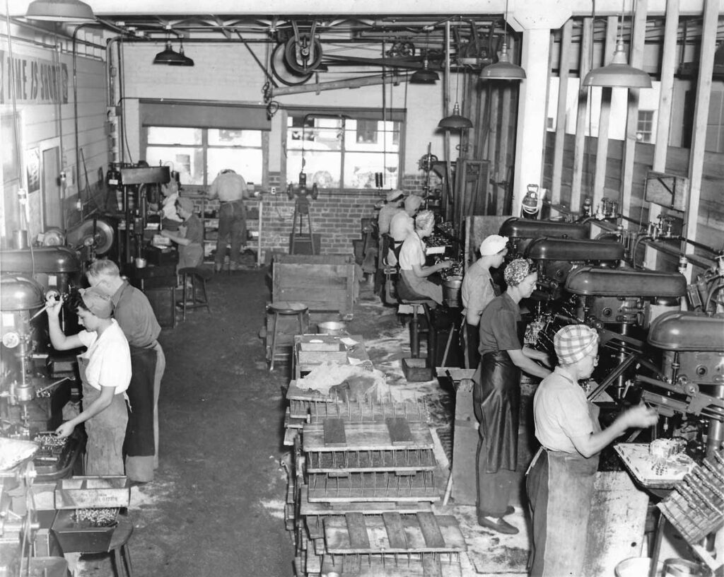 During World War II, the company filled orders for the armed forces. The company operated three shifts, 24 hours a day, and women were hired to work the machinery and work on the assembly line.