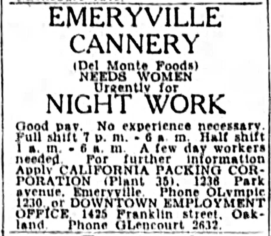 The Western Canning Company that would later become Del Monte Plant #35, was built in 1919 just a short distance away on Park Avenue between Hollis and Watts (now Pixar Animation Studios). For a period, it was California’s largest cannery and their 10 acre campus was frequently expanded on throughout the decades.