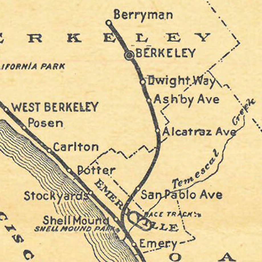 That same year, The Berkeley Branch Railroad was constructed connecting the fledgeling Downtown Berkeley to Shell Mound and Trotting Parks in what is now Emeryville.