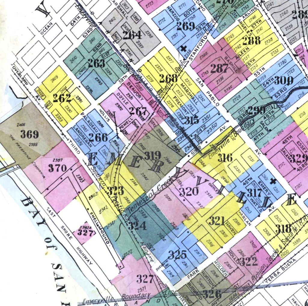 Also in 1911, Southern Pacific extended service from Emeryville through West Berkeley all the way to Albany via what was called the “Ninth Street Line.” This route is what would ultimately become the northern portion of Emeryville’s Greenway.