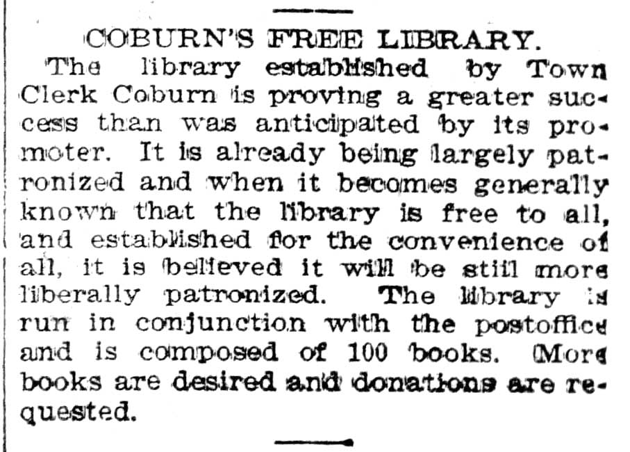 By this time, Judson Coburn had retired and his son John had taken over as Postmaster.