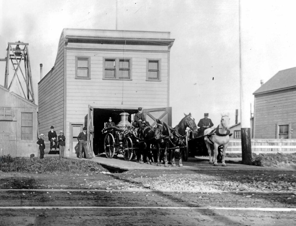Those dangers became painfully clear on April 28, 1907, when a massive blaze destroyed the Umphred Furniture Warehouse at the foot of Park Avenue. The fire spread to neighboring buildings, and the Emery train station burned to the ground. Horse-drawn fire engines from Oakland arrived just in time to contain the conflagration. The disaster convinced Emeryville’s Board of Trustees that the city needed its own fire department.
