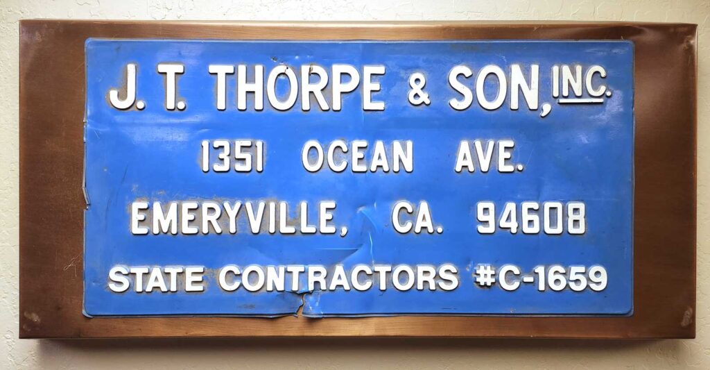An original sign from their Emeryville location is hung in their Richmond office acknowledging their history in Emeryville.