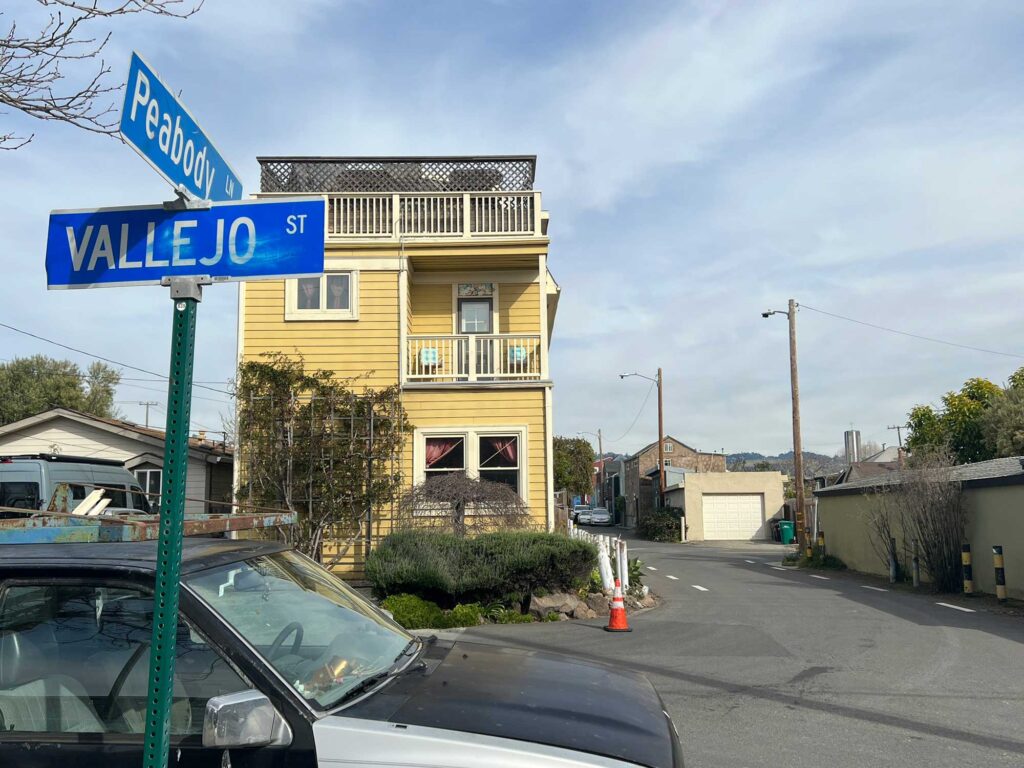 One of these wharves built by Jonathan Peabody was “Peabody’s Landing” that connected to San Pablo Road via a simple dirt path. By 1857, Peabody maintained at least one warehouse along what would become Peabody’s Lane.