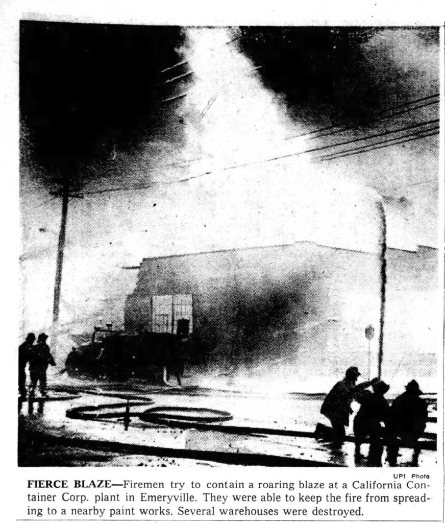 On March 21, 1966 a massive fire ripped through the block along Horton that at the time was considered “the worst fire in Emeryville’s history.”