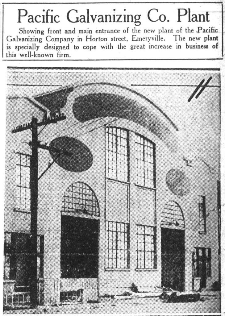 The first plant at 4535 Horton Street was built in 1925 for the Pacific Galvanizing Company. The initial 15,000 square foot facility was built at a cost of $75,000.