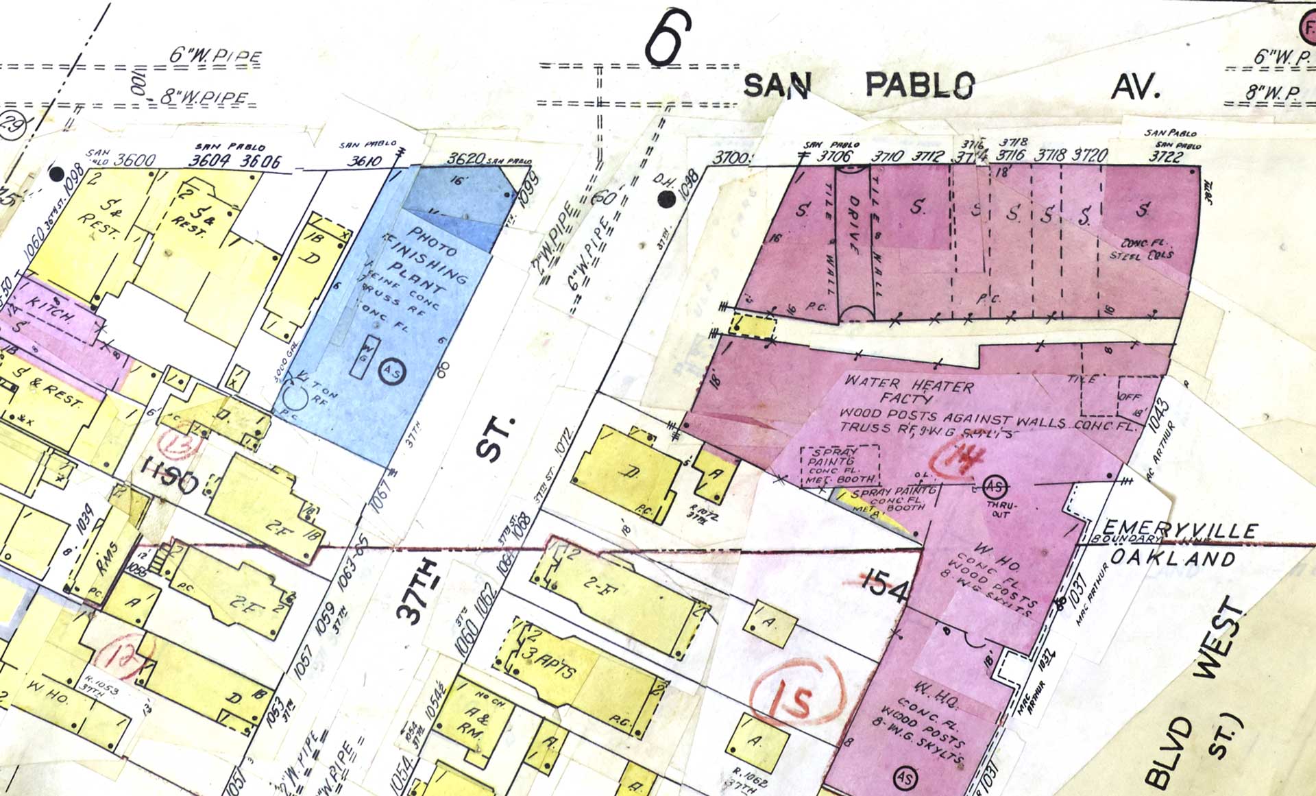 Completed around 1946, the brick commercial structure spanned addresses 3706 through 3722 San Pablo Avenue and would go on to house a wide variety of businesses over the next several decades.