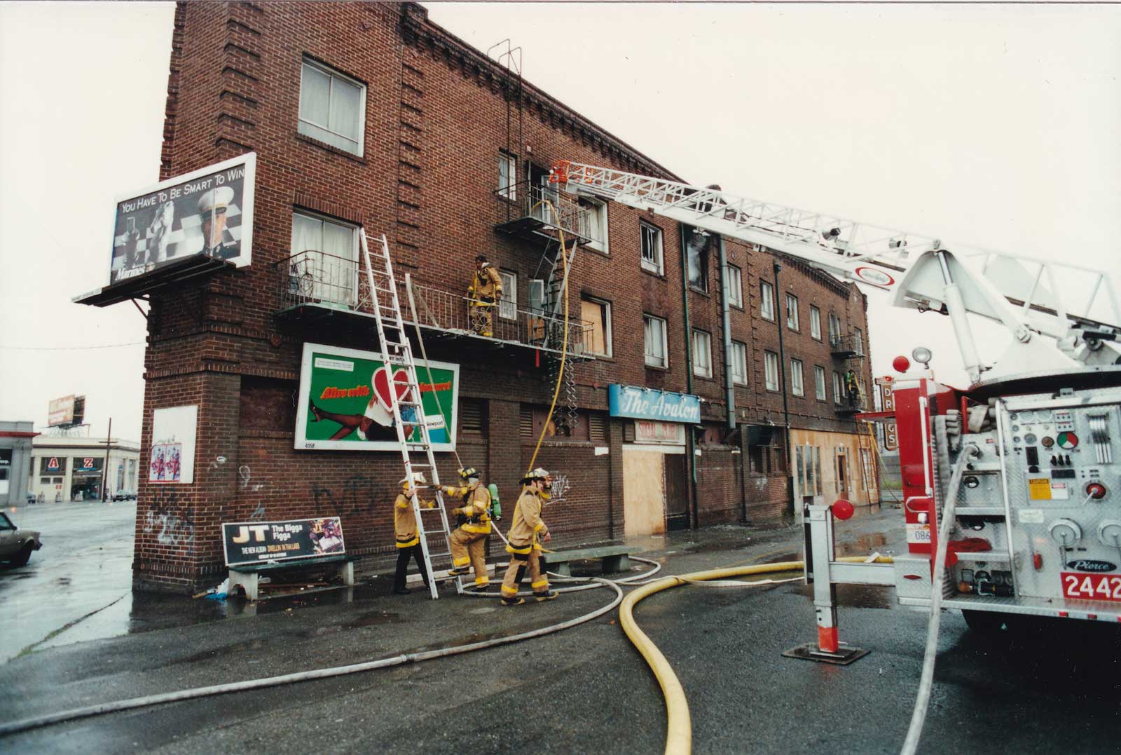 A more catastrophic three-alarm fire occurred a short time later on January 31, 1996. The roof partially collapsed, and the upper rooms sustained water damage. Ten tenants were injured in the blaze. The hotel never reopened.