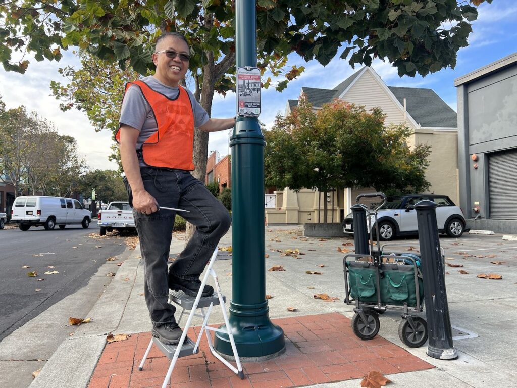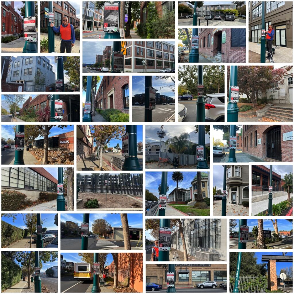 Longtime resident Ben Yee, who owns the Rudy’s property and lives in the district’s only single family home, assisted installation of the tour and expressed excitement with sharing the stories he grew up hearing. “Even after living in Emeryville for almost 50 years, there are still many stories I never heard.”